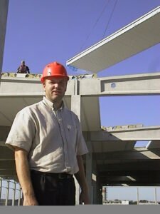 - Kuno Nygaard fra KN Tagdækning kontrollerer, at lettags-elementerne bliver lagt rigtig op på Aldis nye centrallager i Karlslunde.