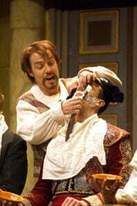 - – Og der barberes…. Bo Glies Nandfred som Figaro. Foto ved fotograf Ole Mortensen/Tilsted Com.