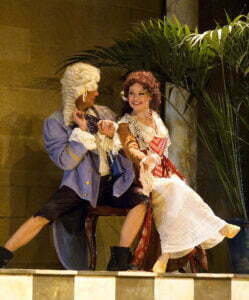 - Grev Almaviva forklædt som spillelærer Don Alonso. Thomas Peter Koppel som Grev Almaviva og Stine Rosengren som Rosina. Foto ved fotograf Ole Mortensen/Tilsted Com.