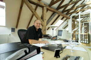 - – Vi får nu et endnu stærkere fodfæste i det midt- og vestjyske, siger tagdækkermester Kaj Nygaard fra KN Tagdækning A/S i Humlum. Foto ved fotograf Ole Mortensen/Tilsted Com.