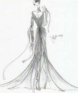- Tegning af en af de fantastisk flotte kjoler, som haute couture-designer Jørgen Simonsen har designet til forestillingen ARIA.