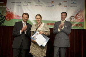 - Lærer Charlotte Ormstrup, Sdr. Felding Skole får overrakt sin præmie af H.K.H. Prins Joachim og videnskabsminister Helge Sander. Foto ved fotograf Ole Mortensen/Tilsted Com.