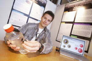- Michael Schantz Klausen fra Lyngby HTX viser sit projekt Kemisk syntese af ferrofluid. Foto ved fotograf Ole Mortensen/Tilsted Com.