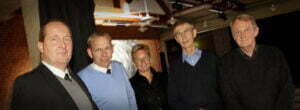 - Borgmester Erik Flyvholm, Lemvig og borgmester Martin Merrild, Struer (fra v.) repræsenterede i borgmester Arne Lægaards fravær det nordvestjyske borgmester-initiativ. De vil nu fortsætte kampen for sygehusets placering sammen med Annette Lind, formand for Aktionsgruppen for Regionshospitalet Vest i Holstebro, overlæge og konsulent Niels A. Larsen, Holstebro Sygehus og Bjarne From, aktionsgruppen Virksomheder i Vest. Foto ved fotograf Ole Mortensen/Tilsted Com.