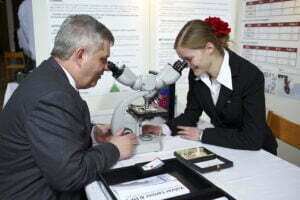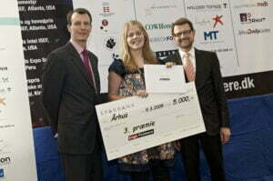 - Anne Lund fra Haderslev Katedralskole får overrakt sin 3. præmie og rejselegat til EXPO, Tunesien af H.K.H. Prins Joachim og videnskabsminister Helge Sander. Foto ved fotograf Søren Palmelund/Tilsted Com.