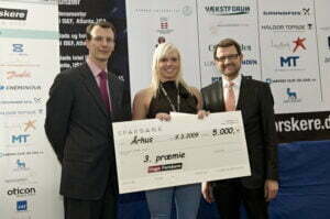 - Anders Clausen, Majuran Perinpam, Søren Emil Tomzak Christensen fra Alssundgymnasiet Sønderborg får overrakt deres 4. præmie og rejselegat til Sverige af H.K.H. Prins Joachim og videnskabsminister Helge Sander. Foto ved fotograf Søren Palmelund/Tilsted Com.