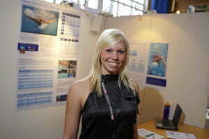 - Line Thams fra Aabenraa Statsskole viser sit projekt Optimal træning for 100 m elitesvømmer. Foto ved fotograf Søren Palmelund/Tilsted Com.