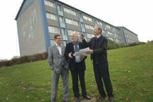 - Boligområdet Grønnedal i Struer skal moderniseres for mere end 200 mio. kr. i de kommende år. Her er det fra venstre byggerådgiver Bent Ove Pedersen, direktør Kurt Degnbol og borgmester Martin Merrild. Foto ved fotograf Søren Palmelund/Tilsted Com.