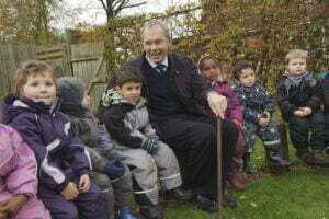 - Børnehaven og vuggestuen Krudtuglen ved Grønnedal skal også moderniseres. Her får borgmester Martin Merrild nogle gode tips fra børnene. Foto ved fotograf Søren Palmelund/Tilsted Com.